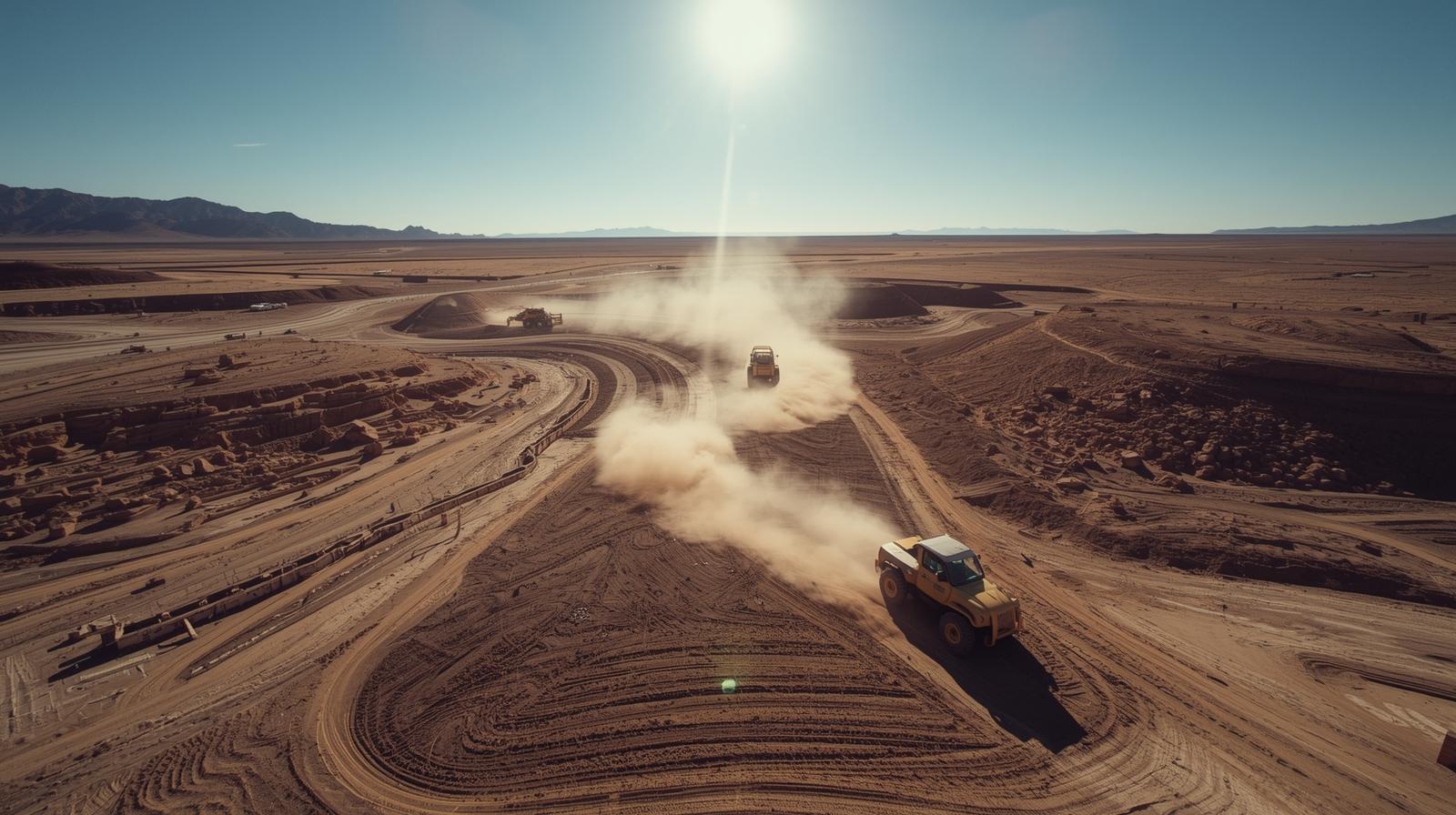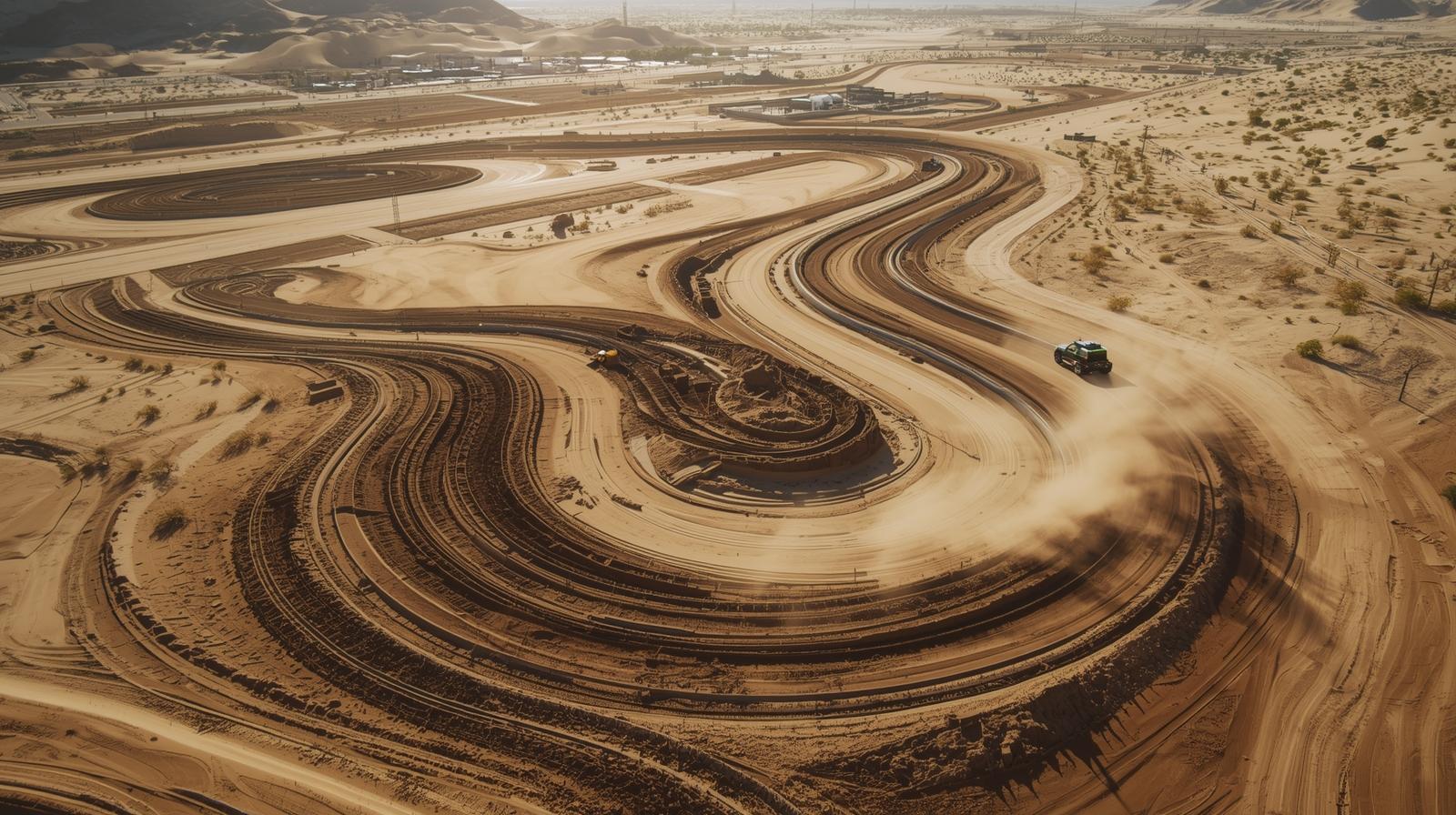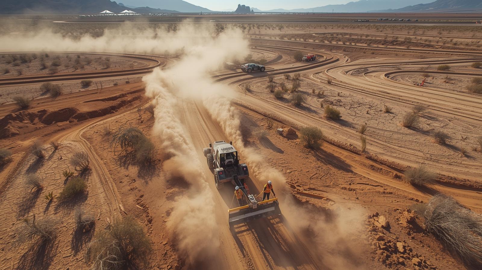 Construcción de pistas de carreras para vehículos eléctricos, con trabajos de movimiento de tierra y riego industrial en una superficie de 4.500 m de largo y 40 m de ancho.