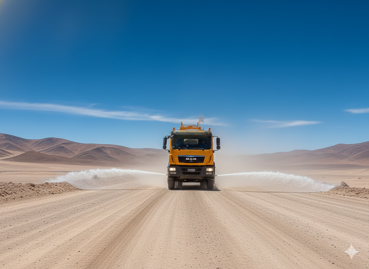 Producción y suministro de salmuera de bischofita para control de polvo, mediante dilución y mezcla controlada en estanques industriales.