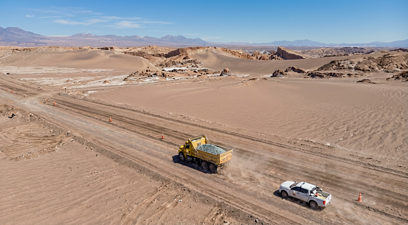 Suministro y transporte de 532 toneladas de bischofita a granel para obras viales de la Región de Antofagasta.