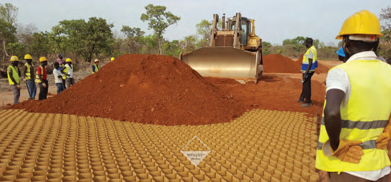 Son estructuras tridimensionales (tipo panal) fabricadas con una aleación polimérica avanzada que refuerza y estabiliza mecánicamente los suelos en caminos, carreteras, vías férreas y plataformas industriales.
